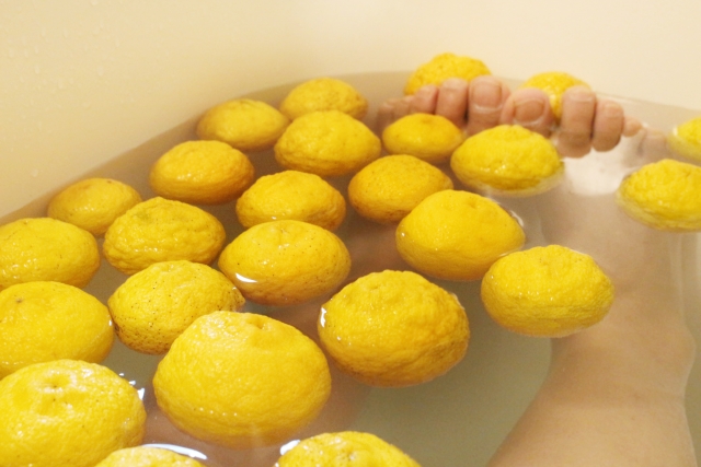 On the winter solstice, people take baths with floating yuzu, a fragrant citrus fruit.