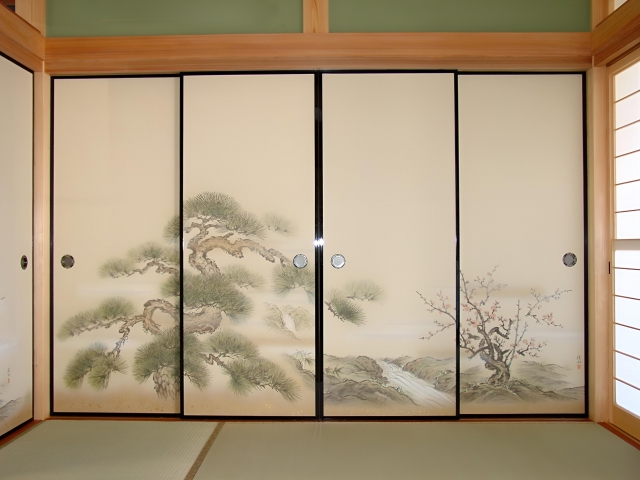 Historically, fusuma were canvases for traditional Japanese painting—landscapes, ink wash art, and seasonal motifs.