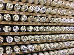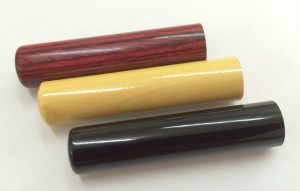 A hanko is a small cylindrical stamp—usually wood, resin, horn, or metal—with your name carved on the end.