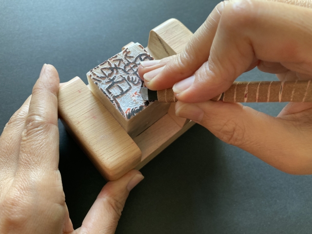 Calligraphers and artists often stamp works with a hand-carved seal called tenkoku.