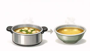 Dashi is usually made through gentle extraction rather than aggressive boiling. This is one reason it often stays clear. If ingredients are pushed too hard, the broth can become cloudy, bitter, or rough. For more on that logic, see Why Is Japanese Dashi So Clear?.