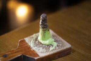 Aroma & heat: Freshly grated real wasabi releases volatile compounds that create a clean, quick heat and fresh green aroma. The intensity rises and then subsides within minutes, allowing the fish or dish to shine.